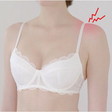 「最近、バストが寂しくなった気がする…」「胸が垂れてきた」「肩こりがひどくて、何をしても治らない」そんな悩みを感じている40代女性は少なくありません。 実はその不調、古くなったブラジャーが原因かもしれません。40代はホルモンバランスや筋力の変化により、バストラインが崩れやすくなる時期。さらに、補整力を失ったブラジャーは、バストの「垂れ・離れ」や「肩こり」を加速させてしまうのです。 この記事では、40代のバスト悩みに寄り添いながら、買い替えのタイミングと選び方のポイントをわかりやすく解説します。    目次 40代 バストの変化とブラジャーの役割 ブラジャーの寿命は着用回数100回の約1年 40代のバストを守る!おすすめのブラジャー選びとお手入れ ブラジャーを味方につけて、自信あふれる40代へ 40代 バストの変化とブラジャーの役割 40代を迎えると、女性の体は急激に変化します。バストを構成するクーパー靭帯は伸びやすく、重力の影響も受けやすくなるため、バストケアは30代よりさらに重要となります。 実は40代になると、女性ホルモン(エストロゲン)の分泌が減少し始め、これがバストのハリを保つコラーゲンの生成にも影響します。さらに加齢による筋肉量の低下や皮膚の弾力の衰えも出てくるため、バストラインが崩れやすくなります。 ホルモンバランスの変化や体全体の衰えが複合的に影響し始める40代の切実な状況を理解し、「今使っているブラジャーは機能しているのか?」という視点が美しいバストを保つうえで大切になってきます。 垂れた胸・離れたバストを加速させる「古いブラ」の危険性 ブラジャーの寿命が過ぎたとき、最も深刻なのは「補整力の低下」です。 ワイヤーの変形と浮き:ワイヤーが体にフィットしなくなり、バストの土台を支える力が失われます。 アンダーベルトの伸び:アンダーベルトが緩むと、バストを正しい位置に「持ち上げる」力が減少します。 ゴムの劣化:ストラップのゴムが伸び切ることで、本来集めるべき脇や背中の脂肪がバストへ戻らず、「バストの離れ」や「老け見えバスト」を加速させてしまいます。 あなたが気づかないうちに、その古いブラはバストをサポートするどころか、バストシルエットの崩れを見過ごしている状態かもしれません。   肩こりの要因は古いブラジャー?40代に多い不調のメカニズム 「肩こりがひどいから、ブラをゆるくしよう」と考える方もいますが、それは逆効果なこともあります。ブラが寿命を迎えることで引き起こされる不調には、以下のような原因が考えられます。 ストラップのズレ:ゴムが伸び、ズレ落ちないようにと必要以上にストラップをきつく調整することで、肩への過剰な負担がかかり、肩こりや頭痛を引き起こします。 不安定なフィット感:アンダーベルトが緩むと、ブラが動くたびにズレ上がり、バストを支えるために肩や背中の筋肉が余計な緊張を強いられます。 劣化したワイヤーの圧迫:ワイヤーが変形し、体に食い込んだり圧迫したりすることで、血行不良を招くうえ、締め付けによる苦痛が増します。 【チェックリスト】あなたのブラは寿命を迎えていませんか? 以下の項目に1つでもチェックがついたら、あなたのブラジャーはすでに寿命を迎えているサインです。 チェック項目...
