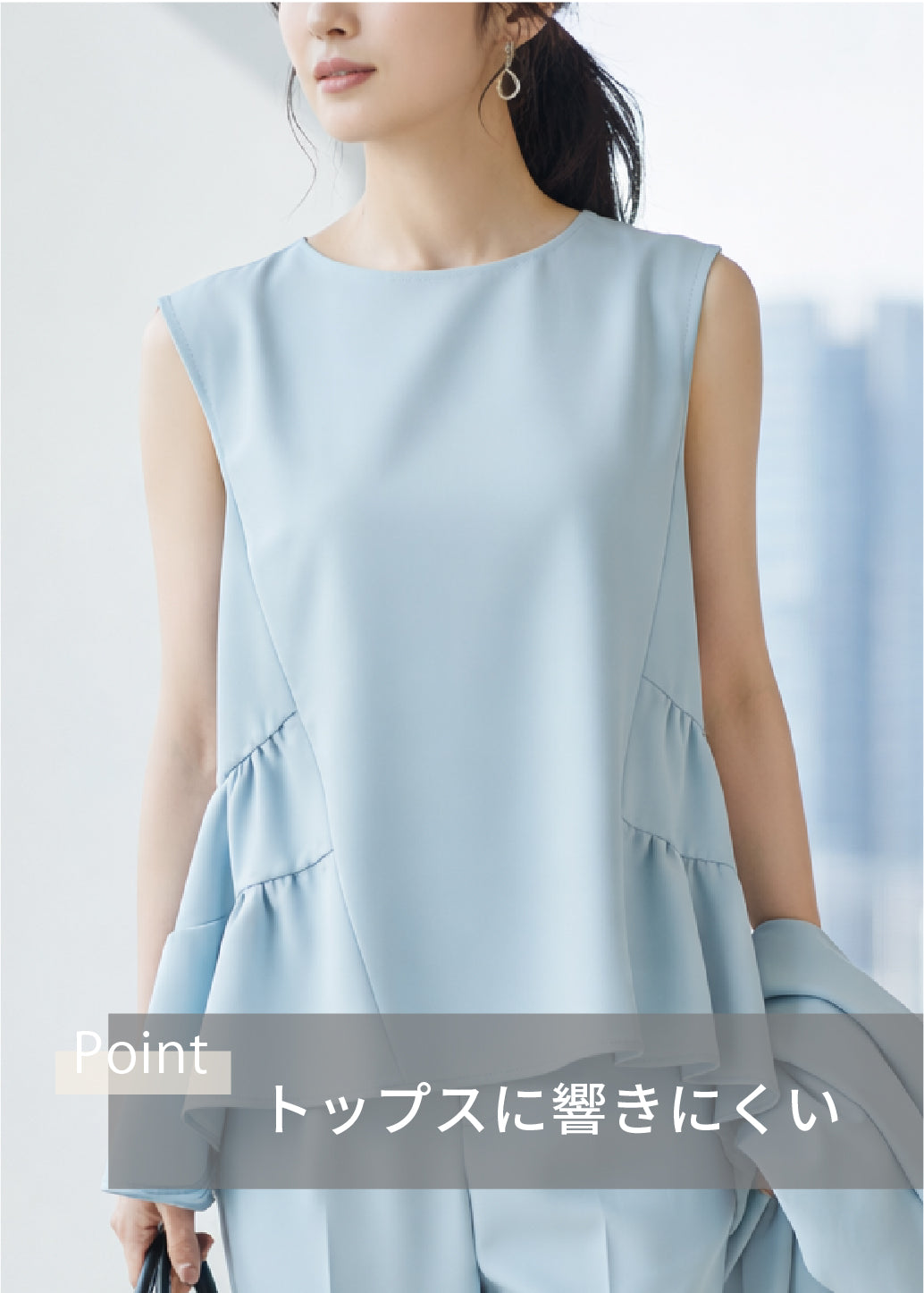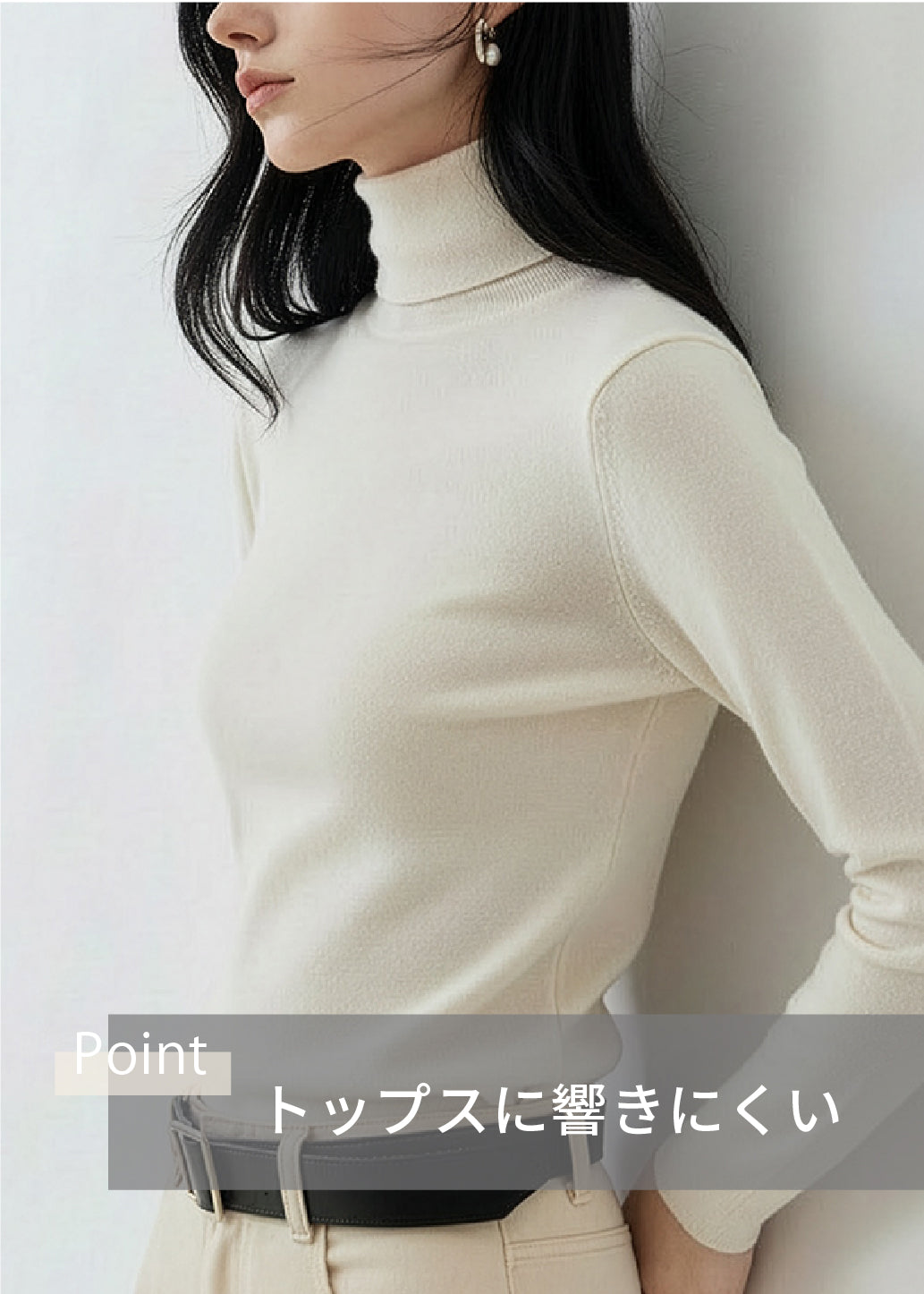 ※下から履くことでスムーズに着用できるのはもちろん、ぴったりフィットするため、バストを潰さず自然に引き上がります。