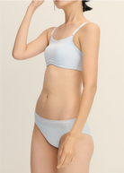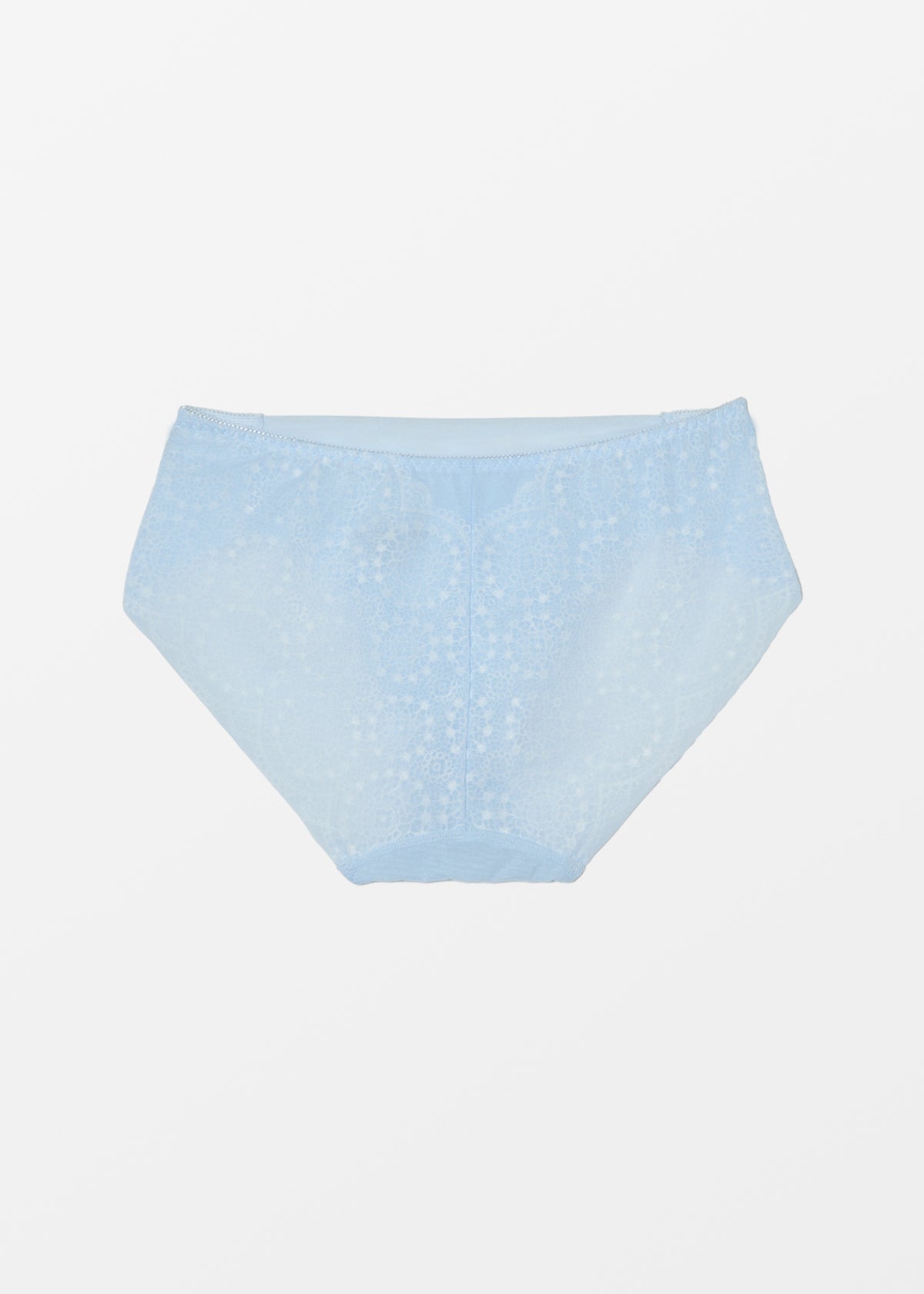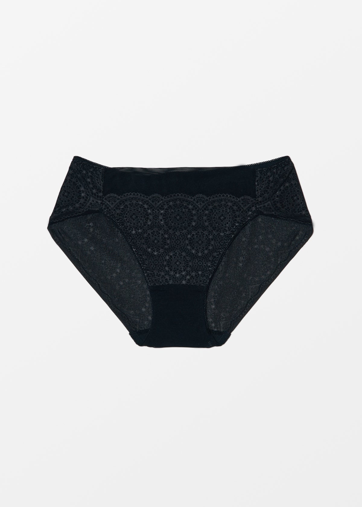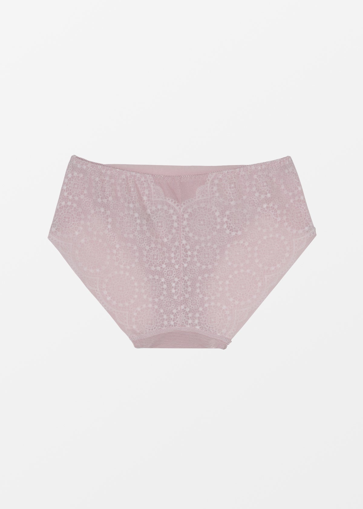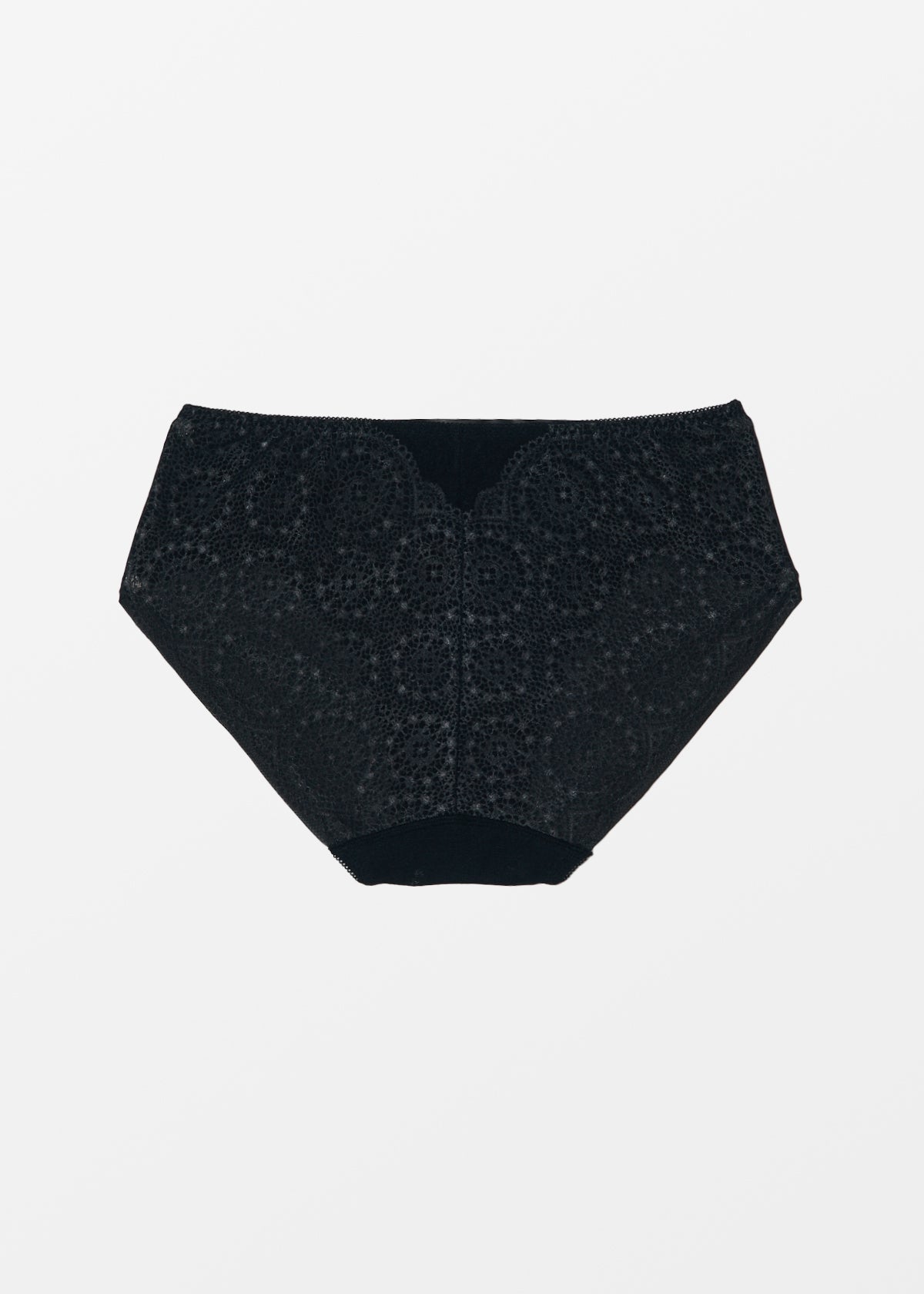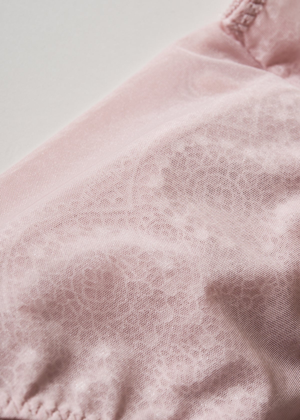 ブラ同様にレースをパワーネットの内側に挟み込み肌に直接触れず、凹凸を抑えた設計に。薄手の服やフィット感のあるボトムスでもラインが目立ちにくく、日常使いにも取り入れやすい。