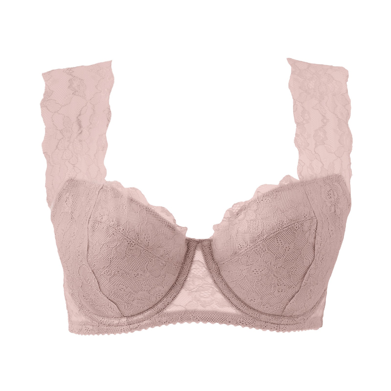 独自設計のワイヤー入りカップと幅広レースストラップが、