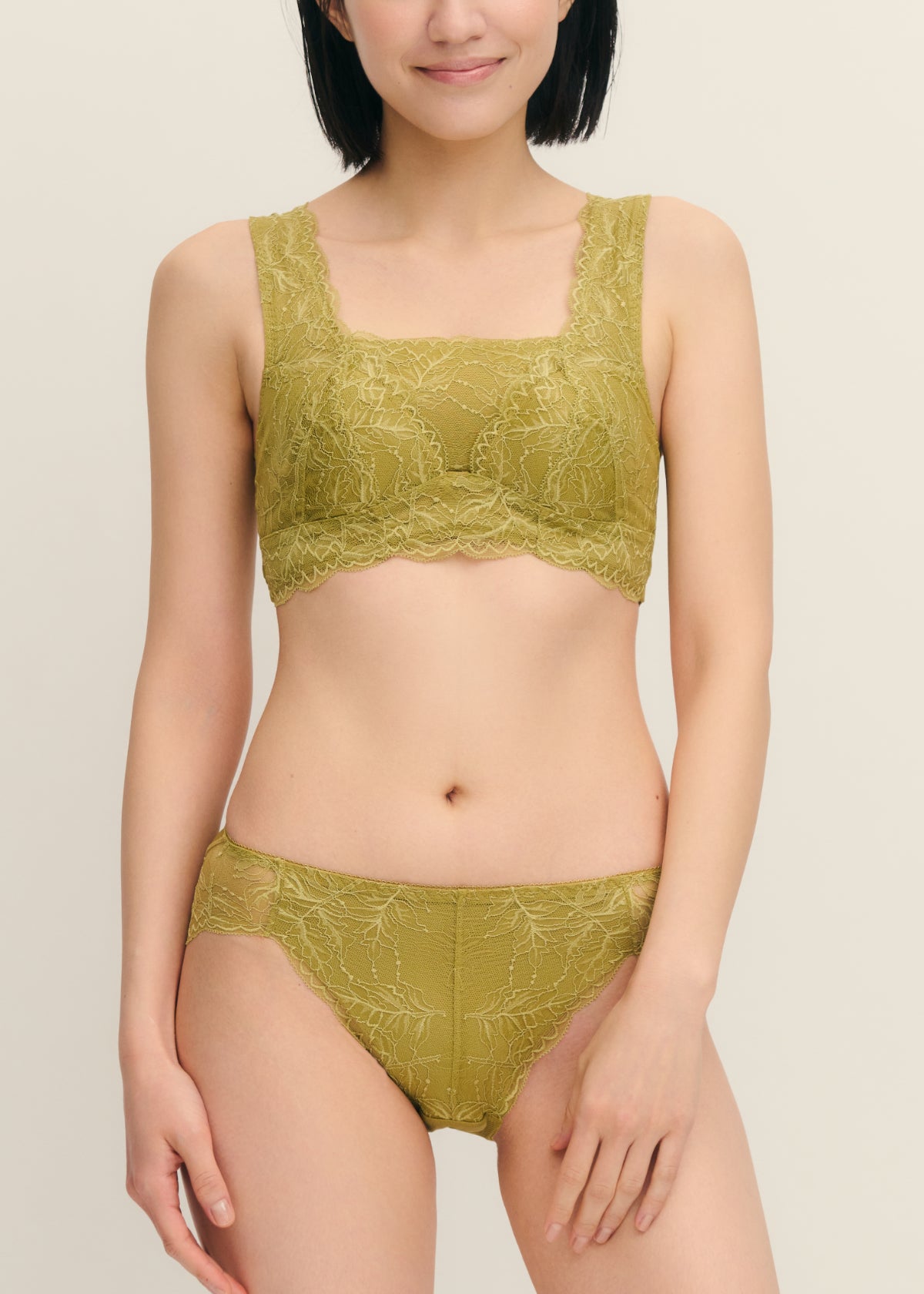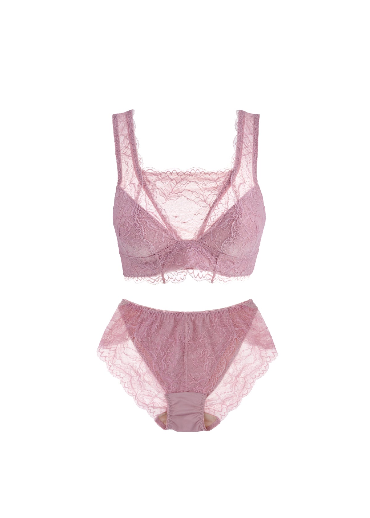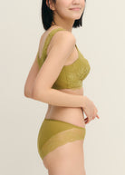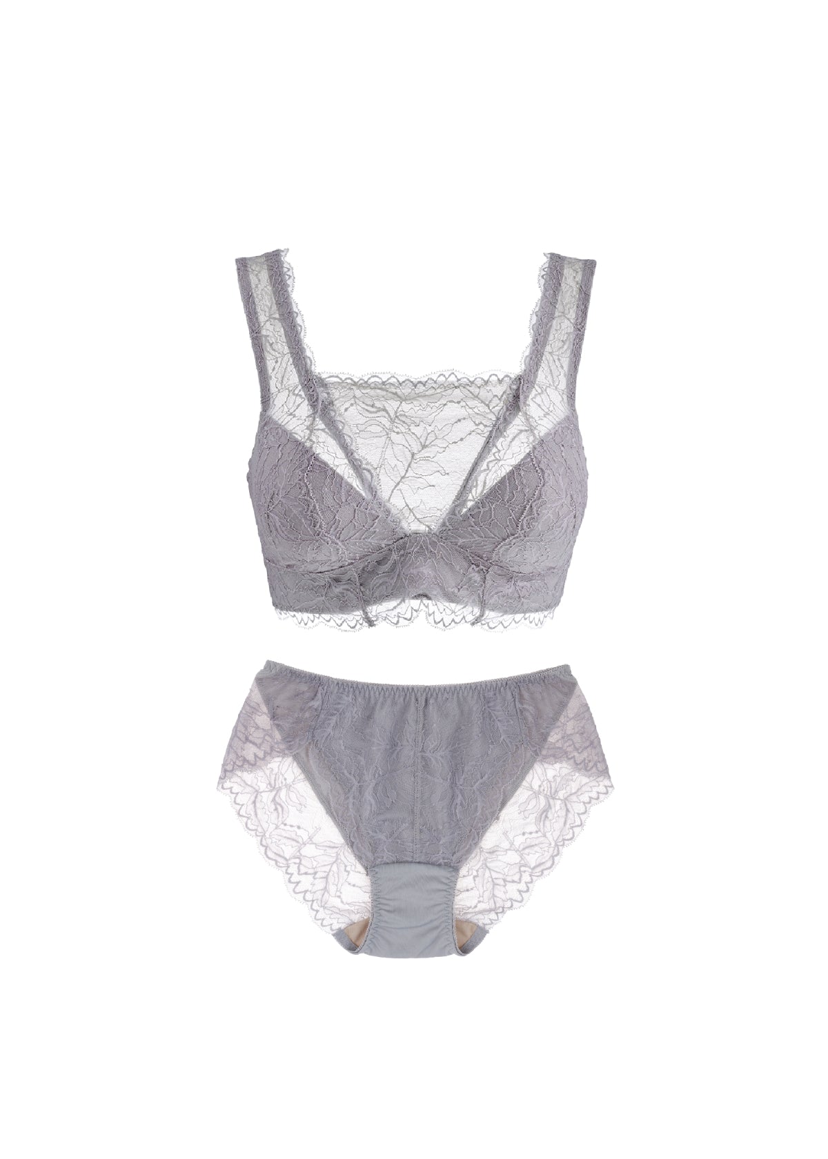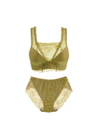 日常のユレ&タレを抑え、バストケアしながら下垂を防ぐ!ブレないエイジングブラと、リーフ柄でエレガントな印象のバックレースデザインでヒップラインもひびかず、ノンストレスな履き心地のストレッチレースのショーツ。