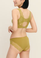 ワイヤー周りにストレッチウレタンシートを使用しているので、バストはしっかり支えられているのにワイヤーのあたりを感じず、まるでノンワイヤーのようなラクな着け心地。