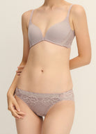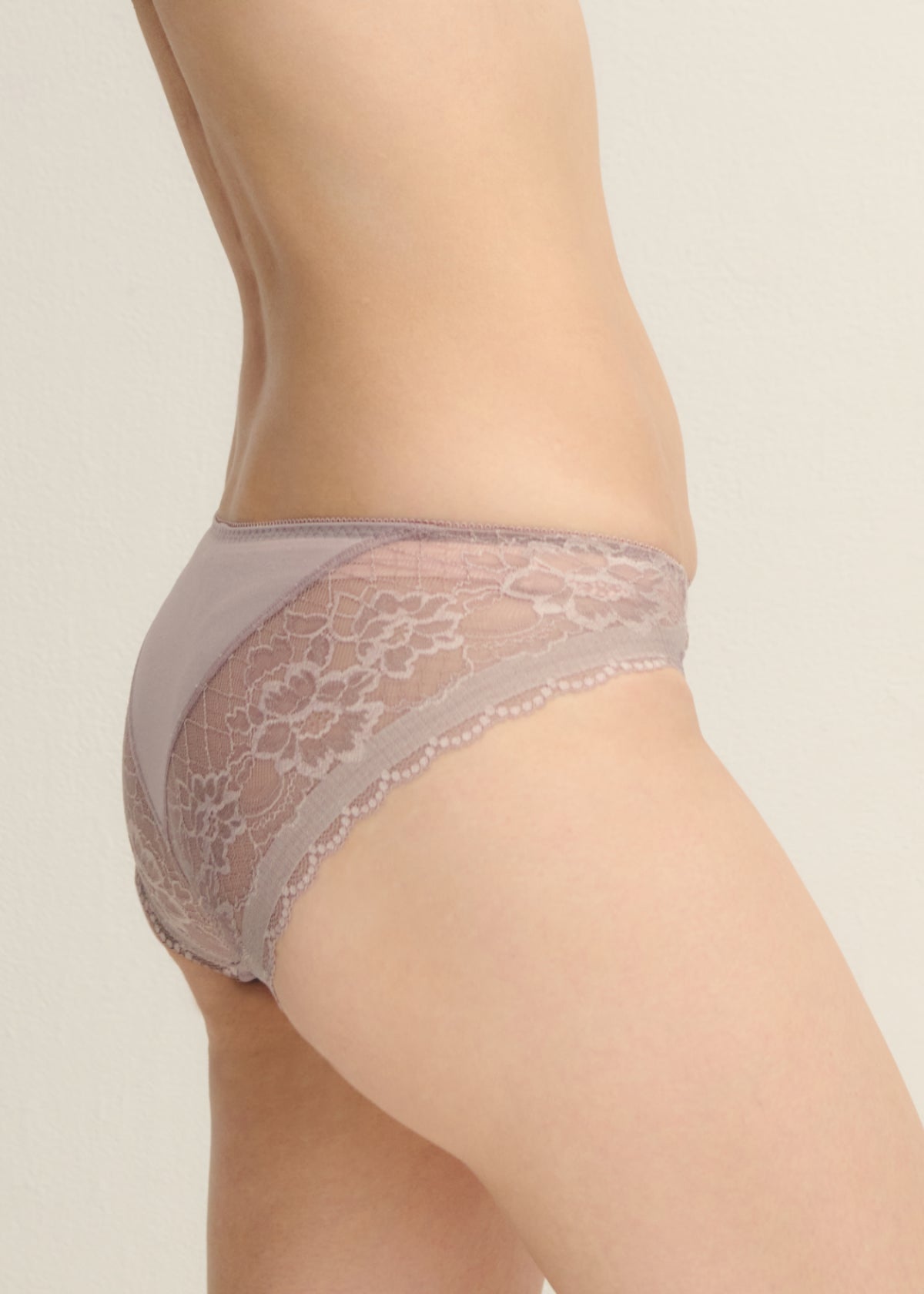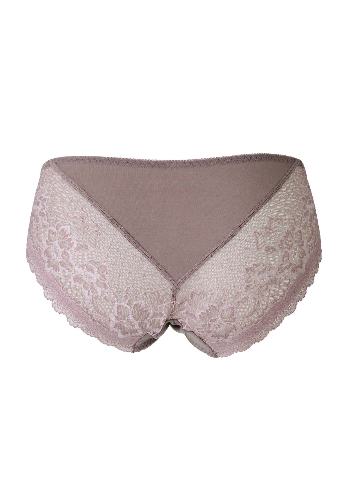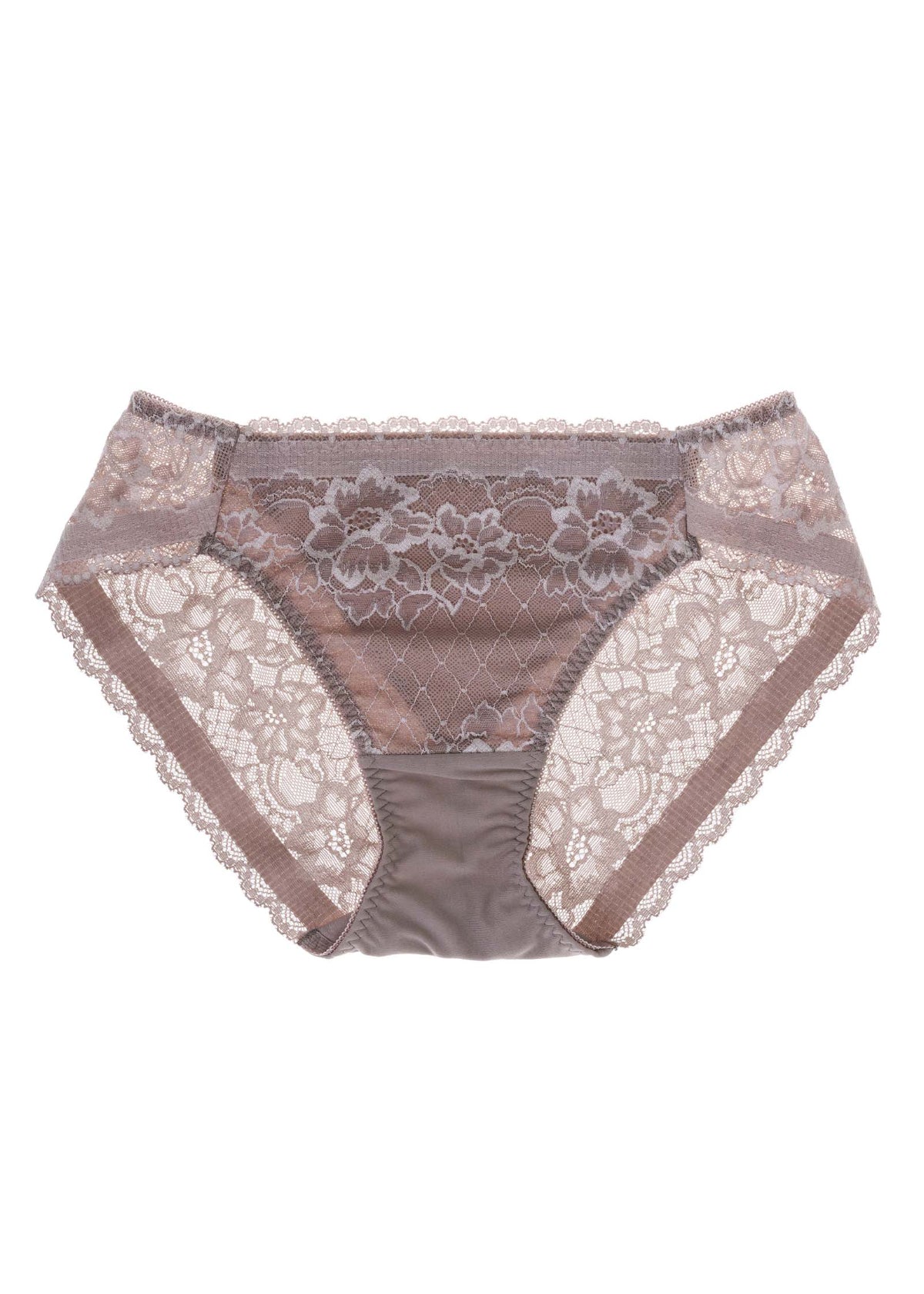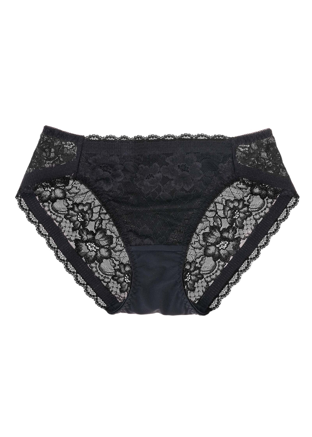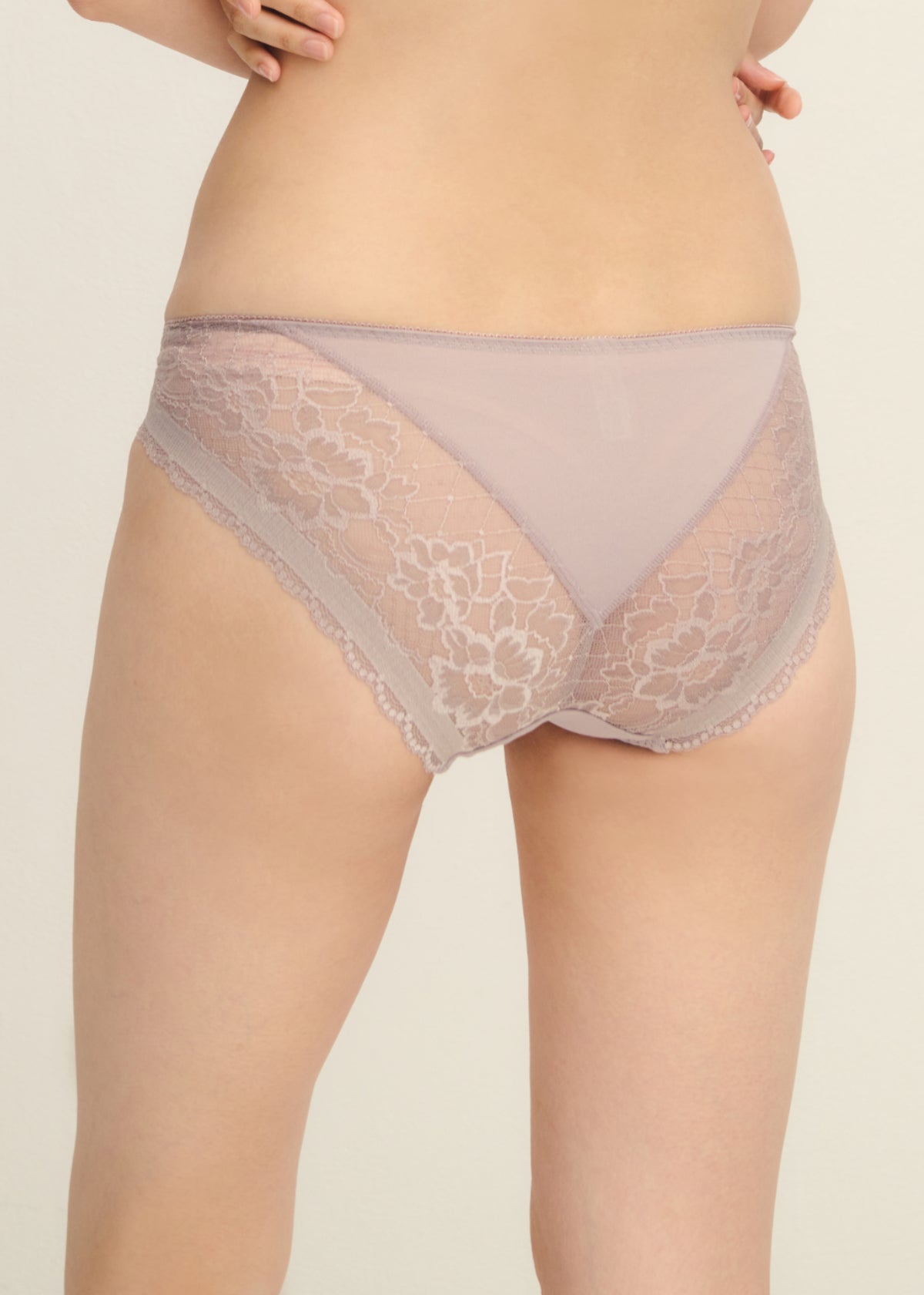 足口にテープがなくてもずり上がりしにくい特殊レースはローズ柄を配してエレガントな印象。バックレースデザインでヒップラインもひびかず、ノンストレスな履き心地。