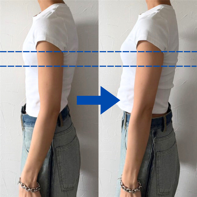 カップトップの位置を高く設定することで、ノンワイヤーでも若々しい上向きバストラインを実現。年齢とともに気になる「垂れ」にも自然と対応し、着るだけで若々しい印象に。お洋服を着た時のシルエットも美しく決まります。