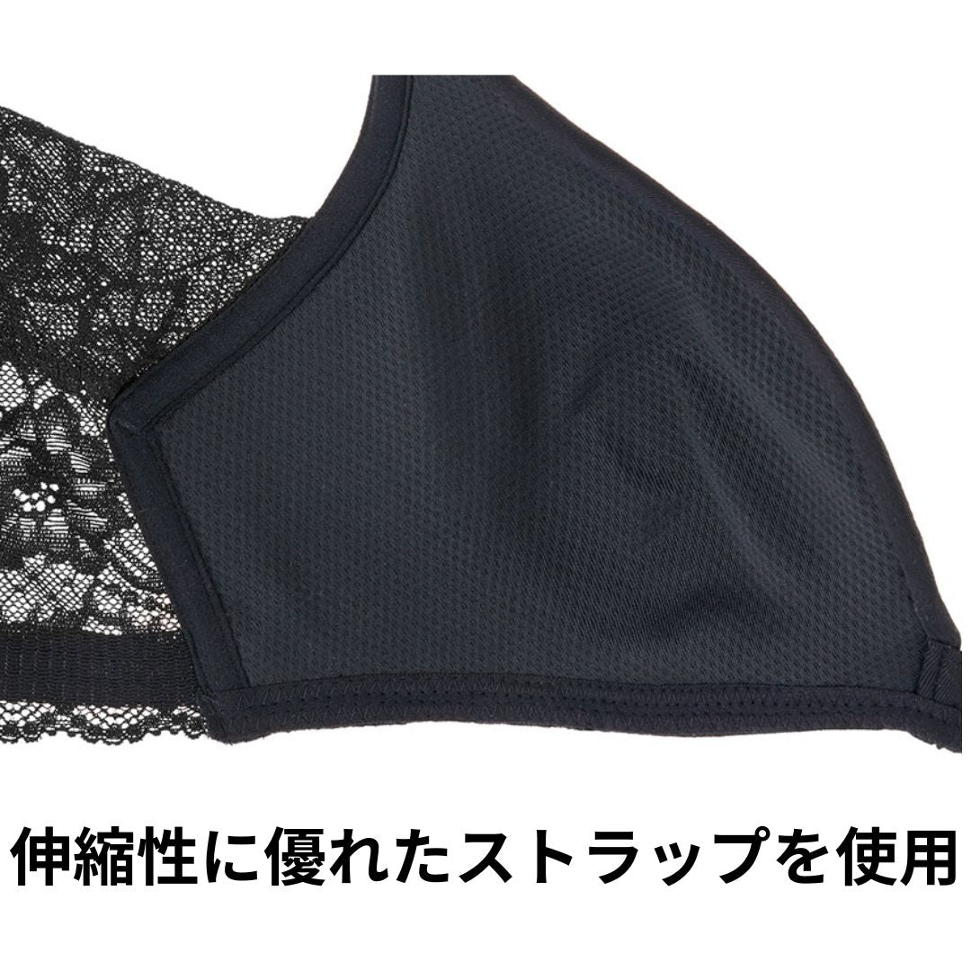 忙しい毎日に寄り添う快適さを追求しました。カップ裏には吸汗速乾メッシュ素材を採用し、さわやかな肌触りをキープ。肌荒れを防ぎ、長時間の着用も快適です。アジャスターをなくし、伸縮性に優れた柔らかストラップを使用することで、リュックやバッグを肩にかけても痛くなりにくい設計に。肩への負担を軽減し、肩コリに悩む方にも優しい設計です。